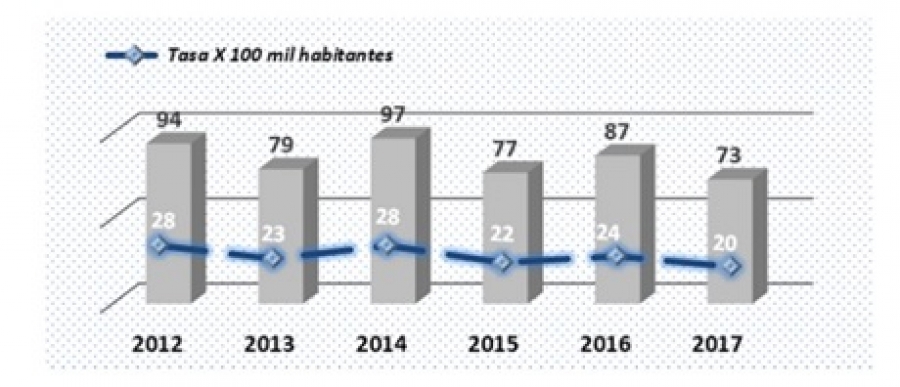 En Yopal, en 2017 se presentó un aumento de un 5% en homicidios dolosos, con una taza de esclarecimiento del 46.9 %.