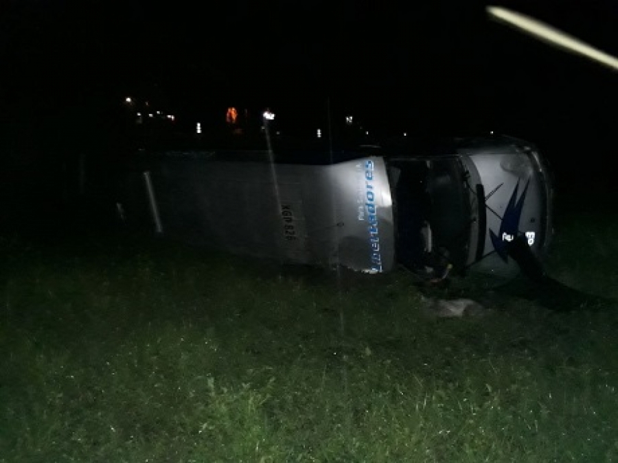 Microbús de servicio público se volcó y resultaron 3 pasajeros heridos
