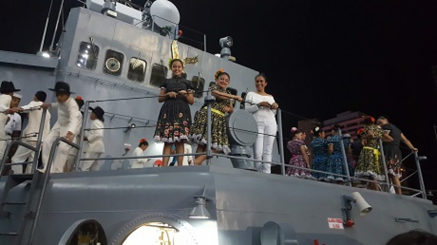Ya en la noche de ese día en el Club Naval luego de una bella presentación ante un público de oficiales, marinos y sus familias, se integraron con ellos. Eran fácilmente reconocidos por sus sombreros, liquiliquis, vestidos floreados y cotizas. La delegación norteamericana y peruana, entre otras, los buscaron para hacerse selfies y así tener un poquito de ese inmenso llano casanareño. Luego de las fotos vino el cruce de cultura con música de San Andrés y la tradicional champeta, donde hubo una verdadera fusión de marinos y llaneros juntos bailando.