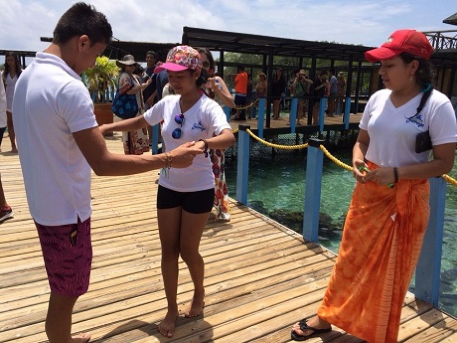 Así lo hicieron en el conocido Acuario ubicado en las Islas del Rosario, donde luego de recorrer cerca de una hora el mar Caribe desde el centro turístico para conocer los corales, las tortugas marinas, rayas, grandes peces, tiburones y los delfines, entre otros, comenzaron a cantar y bailar ante decenas de asistentes que asistían al Oceanario.
