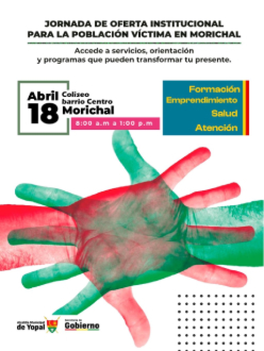 Escrita por Casanare NoticiasLa Alcaldía de Yopal, a través de la Secretaría de Gobierno, realizará una jornada de oferta institucional dirigida a la población víctima el próximo 18 de abril de 2026. La actividad se llevará a cabo en el coliseo del barrio Centro del corregimiento de Morichal, en un horario de 8:00 a.m. a 1:00 p.m.