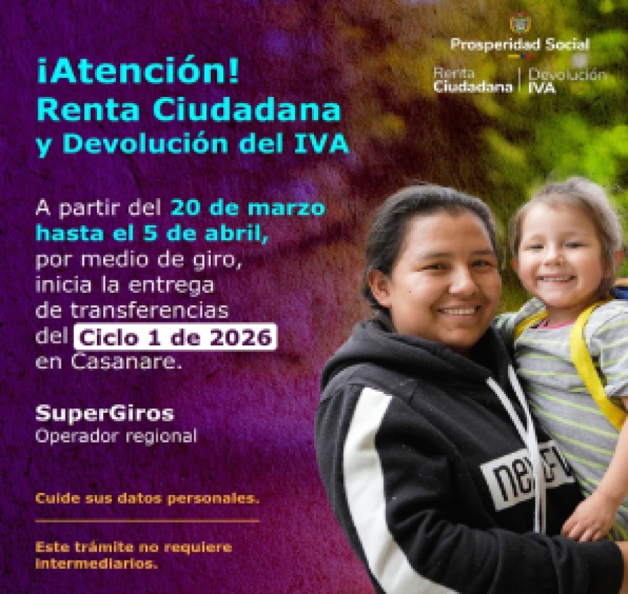 “Continuamos llegando a los sectores más vulnerables de los 19 municipios de Casanare, priorizando a hogares monoparentales con niños menores de 6 años y familias con personas en condición de discapacidad que requieren cuidado permanente. Todos los trámites son gratuitos y no requieren de intermediarios, con lo que se garantiza la entrega directa a los beneficiarios de los recursos del Gobierno nacional”, dijo la gerente regional de la entidad, Naidú Hurtado.